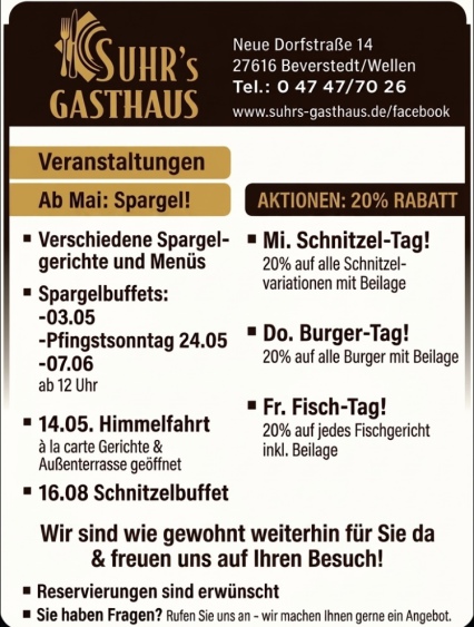 Reservierungen werden erwünscht! + weitere Informationen siehe unter "Veranstaltungen"