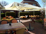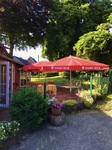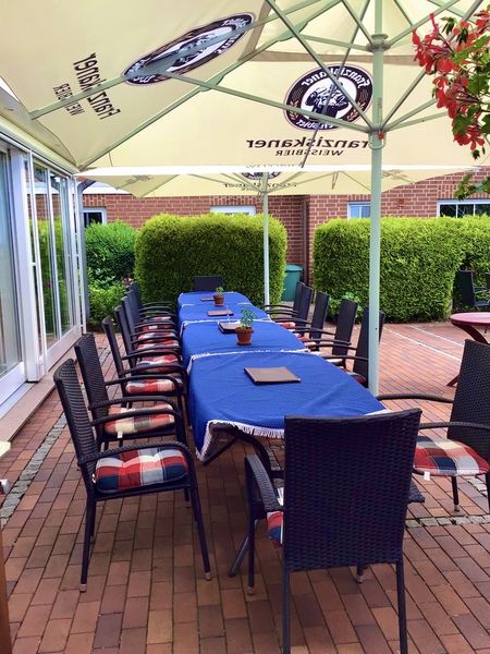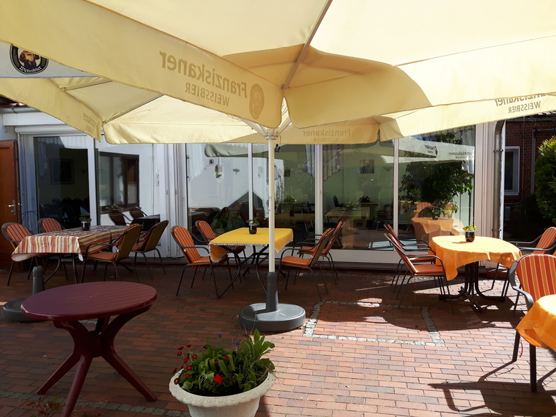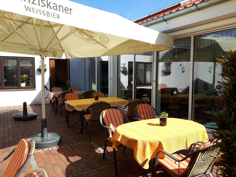 In unserem Biergarten servieren wir bei schönem Wetter alle Speisen und Getränke draußen.
