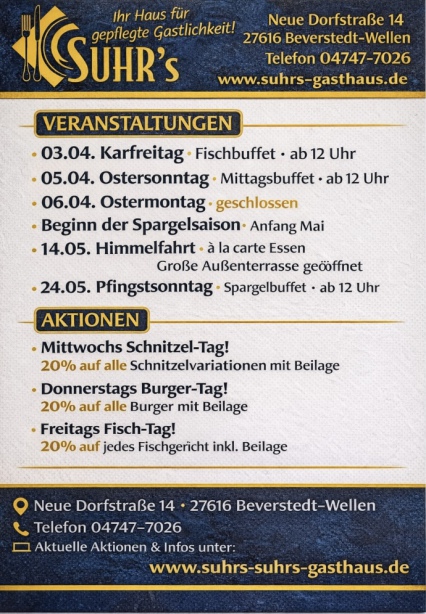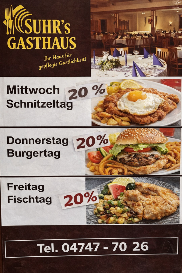 Kommen Sie vorbei, genießen ein leckeres a la cart Gericht in angenehmer Atmosphäre & erhalten an den Aktionstagen zusätzlich den Rabatt