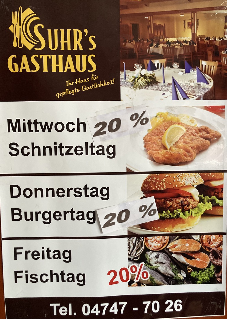 An verschiedenen Wochentagen gibt es ganze 20% Vergünstigung auf ausgewählte Speisen: